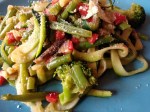 Sou grande admiradora do espiralizador elétrico da Silvercrest que o Lidl comercializa em Portugal. É muito fácil de trabalhar. Em poucos segundos consegue excelentes e variados resultados no esparguete, linguini ou tagliatelle. Neste caso, optei pela curgete, mas pode usar muitos outros ingredientes. Dê asas à imaginação!