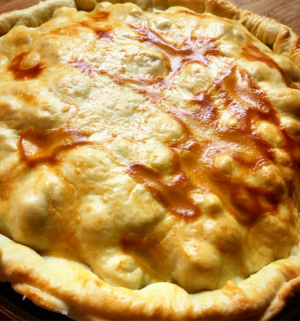 Acrescente os peitos de frango cortados em cubinhos, tempere com cubinhos e cozinhe por cerca de 5 minutos. Adicione a nata com café e deixe levantar fervura. Forre uma tarteira com uma das massas quebradas e pique-a com um garfo. Verta o recheio para a tarteira e coloque a outra massa por cima. Feche bem, apertando as laterais com os dedos. Pincele com o ovo batido e leve ao forno pré-aquecido a 180º C por cerca de 15 minutos, até a massa ficar dourada.